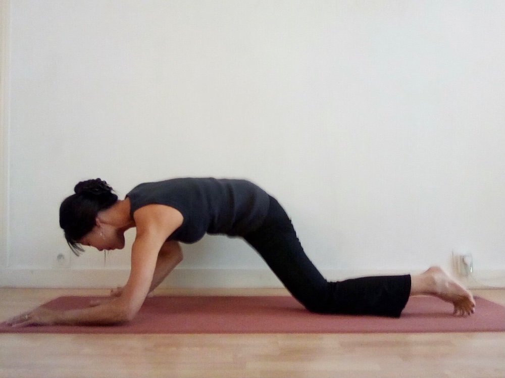 両肘とうしろの膝を着地させ