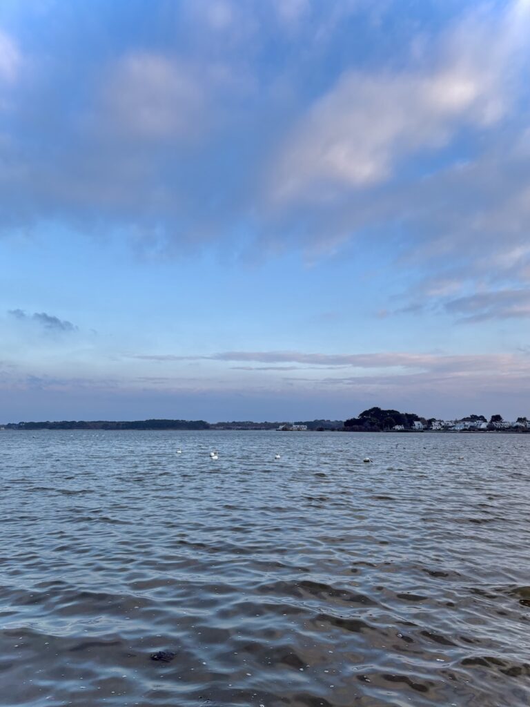 海へ出たら、冷たそうな水面に白鳥が数羽🦢